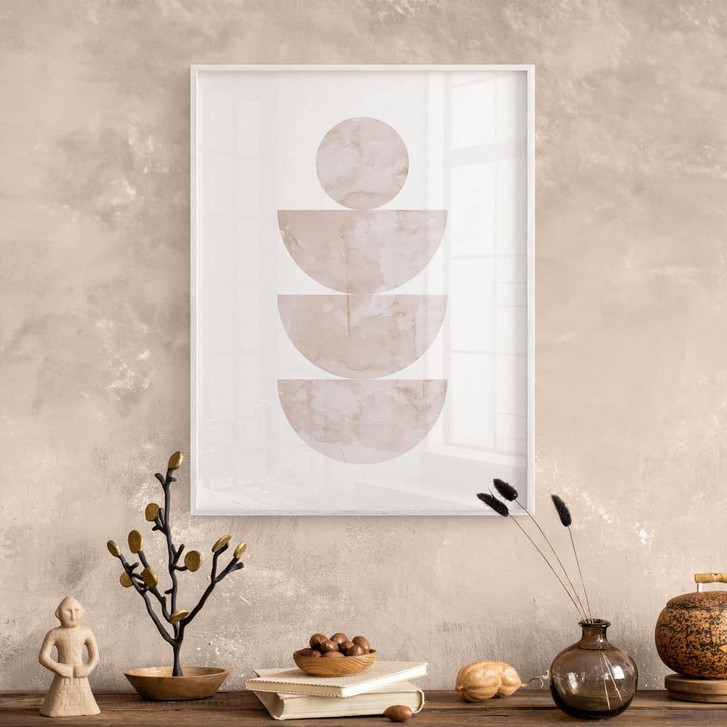 Das Poster von Vitor Costa besticht durch sein geometrisches Design, das Ausgewogenheit und Harmonie ausstrahlt. Die Anordnung von Halbkreisen und einem zentralen Vollkreis in sanften Beige- und Cremetönen wird durch eine zarte Marmorstruktur ergänzt, die dem Motiv eine subtile Eleganz verleiht. Es verbindet modernes Design mit zeitloser Ästhetik.