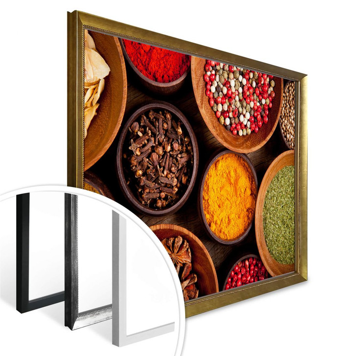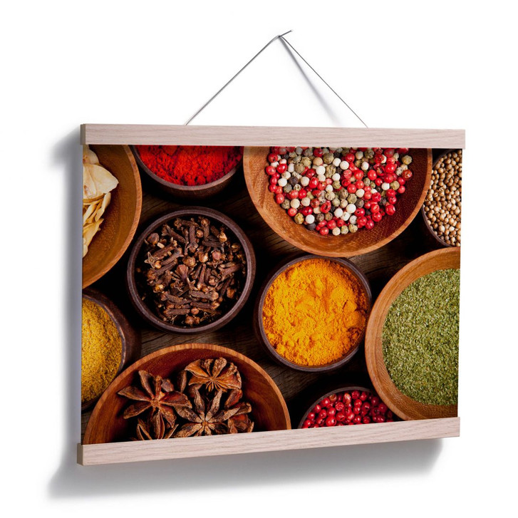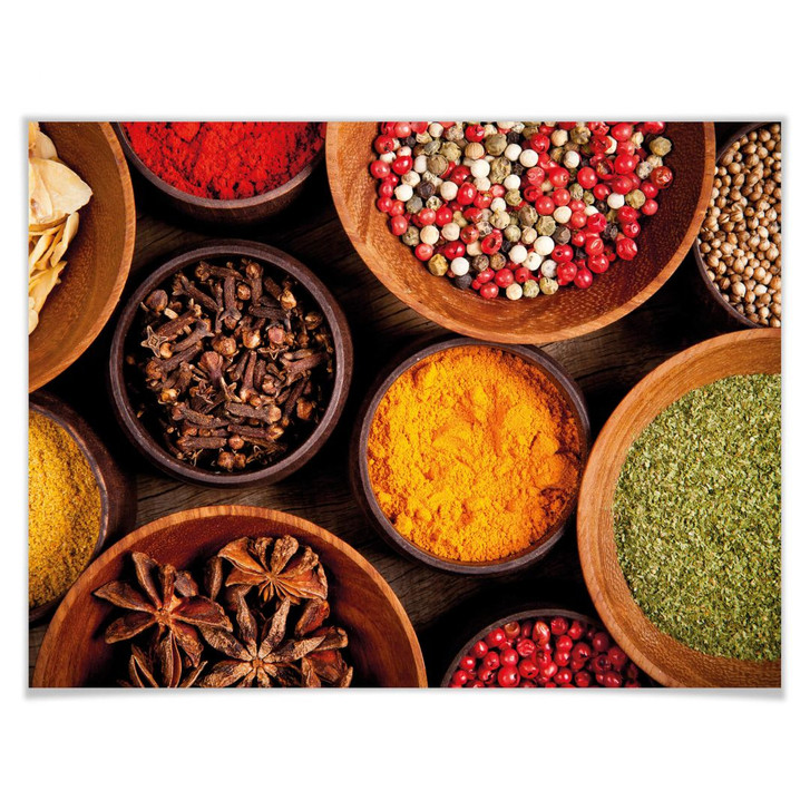 Die schöne Farbkombination verleiht dem Motiv einen fernöstlichen Touch. Beim Betrachten des Posters meint man fast, die verschiedenen Gewürze riechen zu können.