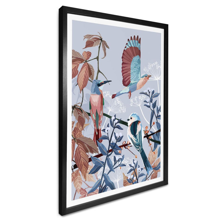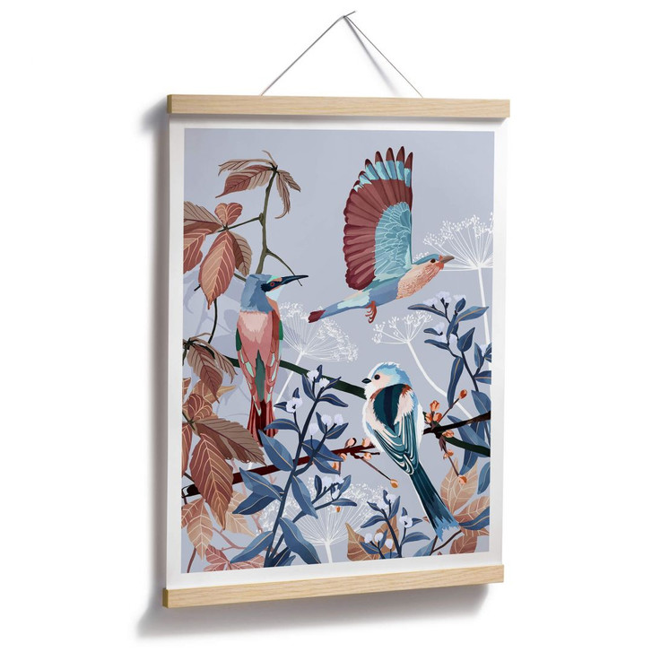 Schaffe mit diesem Wohnaccessoire eine gemütliche Atmosphäre! Es vereint Ästhetik und Harmonie perfekt und lädt zum Entspannen und Geniessen ein. Der Kunstdruck von Goed Blauw macht Lust auf die kalte Jahreszeit. Geniesse den Anblick der drei farbenfrohen Vögel im Baum.