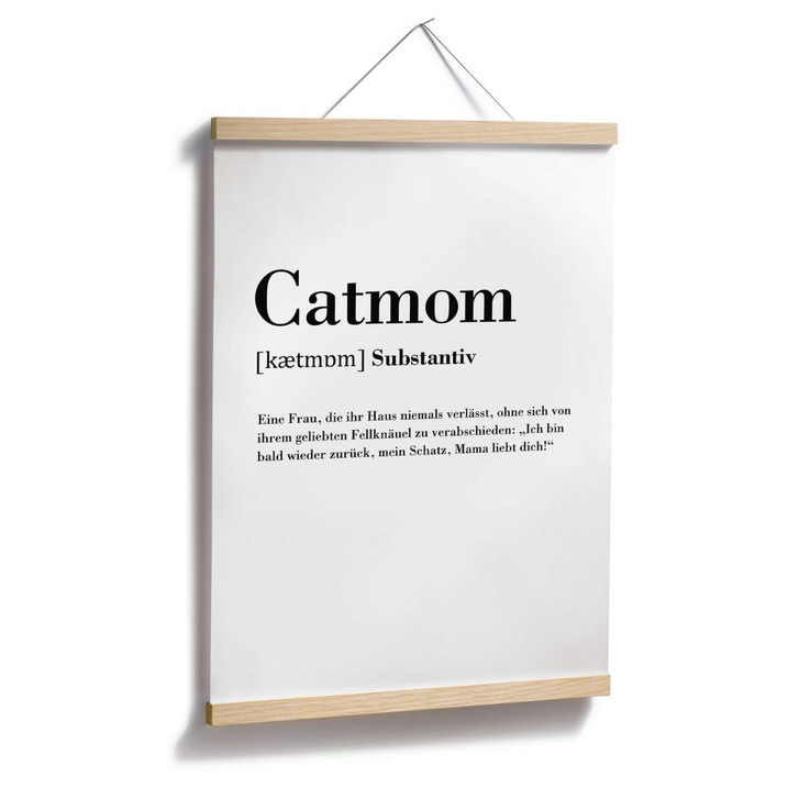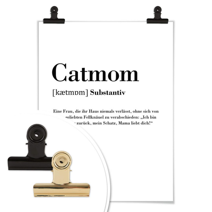 Um deine Wände neu zu gestalten, brauchst du nur ein paar kleine Accessoires, die dein bestehendes Interieur auf ästhetische Weise ergänzen. Setze mit diesem typografischen Poster spannende Akzente! Diese Definition einer „Catmom“ ist sofort ein liebevolles Statement über die Katze und ihren Besitzer.