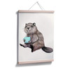 Das Motiv zeigt einen kleinen braunen Biber, der eine mintfarbene Kaffeetasse hält und zufrieden lächelt. Auf der Tasse steht in Grossbuchstaben „damn fine“, was so viel bedeutet wie „verdammt gut“. Ein amüsantes Bild, das gute Laune in dein Zuhause bringt!