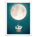 Eine wunderbare, klare Nacht, in der drei weisse Kaninchen glücklich in einem Korb am Mond hängen. Der Mond sieht aus wie ein Heissluftballon und trägt die Kaninchen mit sich herum. Da wünscht man sich doch, selbst im Korb zu sitzen und die wunderbare Nacht zu geniessen.