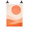 Verwandle deinen Wohnbereich in einen beruhigenden Ort, an dem du es dir mit unseren modernen Motiven gemütlich machen kannst. Der Kubistika-Kunstdruck zeigt eine harmonische Landschaft mit Bergen und Tälern in sanften Orange- und Rosatönen. Darüber strahlt die riesige Sonne.