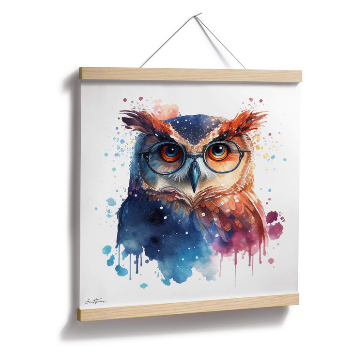 Poster Heine - Intelligente Eule mit Brille - Astro Cruise - Quadratisch