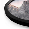 Schaffe mit diesem Wohnaccessoire eine gemütliche Atmosphäre in deinem Zuhause! Es schafft eine wunderbare Mischung aus Ästhetik und Harmonie, die zum Entspannen und Geniessen einlädt. Die Fotografie von Ariel Ling raubt dem Betrachter den Atem. Sie zeigt eine beeindruckende Ansicht einer Berglandschaft. Im Hintergrund geht die Sonne auf.