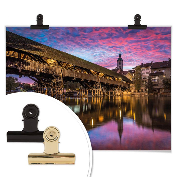 Schmückt eure Wände mit originellen Bildern und schafft mit unserer Wandkunst ein entspanntes Wohnambiente! Die Fotografien von Florian Huber eignen sich dafür besonders gut. Sie wecken das Fernweh in der Schweiz. Das Motiv zeigt die alte Holzbrücke, die direkt in die Altstadt von Olten führt.
