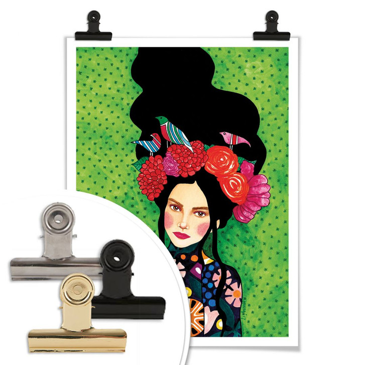 Dieses Frauenporträt erinnert an den Frühling: Vögel, Blumen und Farben, die gute Laune verbreiten. Die Künstlerin Hülya malt Frauenporträts mit unterschiedlichen Hintergründen, aber immer mit auffälligen Farben, die gut miteinander harmonieren. Dekoriere mit farbenfrohen Kunstwerken von Hülya Özdemir, die deine Wände lebendig aussehen lassen! Wir haben noch mehr Bilder von Hülya im Angebot – schau doch mal rein!