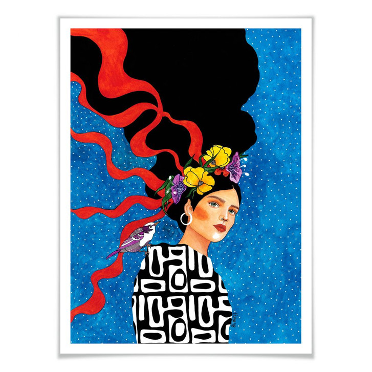 Verpasse deinen Wänden einen neuen Look – diese Wanddekoration ist eine stilvolle Wahl. Dieser Kunstdruck ist dank seines kreativen Einsatzes von Farbe ein aussergewöhnlicher Blickfang. Dieses Wandbild ist eine stilvolle Art, Mode und Schönheit zu präsentieren. Die Schönheit der Frau wird hier gefeiert. Diese Dekoration ist eine Augenweide und zaubert einen erstklassigen Look im modernen Stil. Das Poster besticht durch seinen hochwertigen Druck, der das blaue und farbenfrohe Design wunderschön zur Geltung bringt. Es kann einfach an die Wand gepinnt, geklebt oder gerahmt werden. Mit nur wenig Aufwand kannst du ein neues, ansprechendes Raumgefühl schaffen.