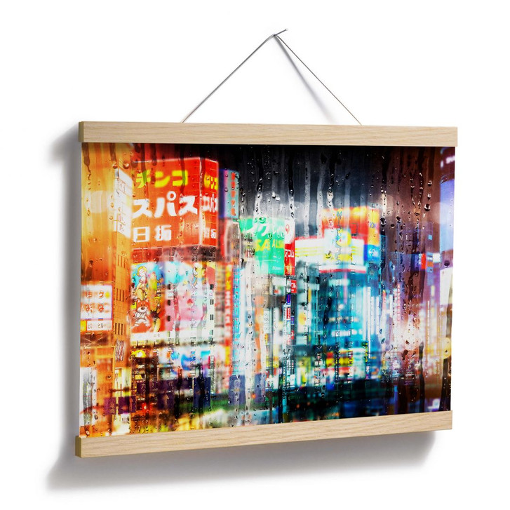 Der Stadtteil Shinjuku in Tokio an einem regnerischen Abend