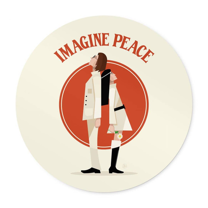 Das runde „Imagine Peace“-Poster von Retrodrome bringt das ikonische Bild von John Lennon und Yoko Ono in aussergewöhnlicher Form an deine Wände. Die harmonische Kombination aus minimalistischem Design und einer klaren Friedensbotschaft wird durch das runde Format stilvoll in Szene gesetzt.