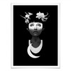 Das Porträt zeigt eine schöne Frau mit exotischen Blumen im Haar. Der Mond scheint eindrucksvoll in der Dunkelheit. Diese moderne Schwarz-Weiss-Zeichnung ist eine stilvolle Dekorationsidee für Ihre Räume!