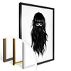Die Frau ist in ihr langes dunkles Haar gehüllt und wirkt sehr geheimnisvoll. Nur ihre dunklen Augen sind zu sehen.