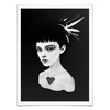 Das Porträt zeigt eine junge Frau mit einem Herz auf ihrem Dekolleté in Schwarz-Weiss.