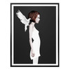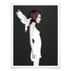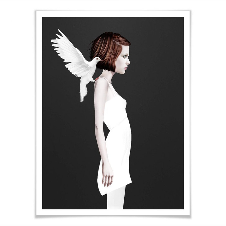 Das Poster zeigt eine junge Frau in einem weissen Kleid, auf deren Schulter eine weisse Taube flattert. Der Hintergrund ist in einem kontrastierenden Schwarz gehalten.
