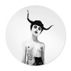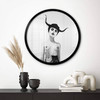 Das Poster zeigt eine junge Frau in Schwarz-Weiss mit Hörnern auf dem Kopf. Bringe moderne Kunst in dein Zuhause und werde Teil des geheimnisvollen Märchens!