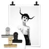 Das Poster zeigt eine junge Frau in Schwarz-Weiss mit Hörnern auf dem Kopf.