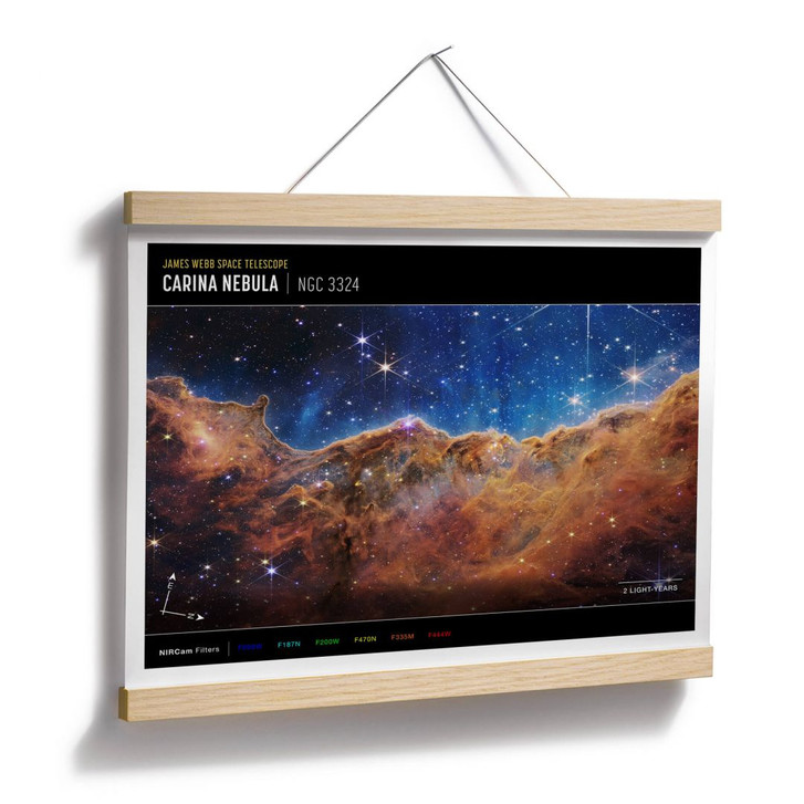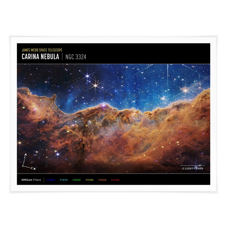 Zaubere mit diesem Wandbild ein trendiges Wohnerlebnis und gib deinen Wänden das passende Outfit. Das Motiv zeigt eine Fotografie der Sternentstehungsregion „NGC“ im Carina-Nebel, aufgenommen von der Nahinfrarotkamera (NIRCam) des James-Webb-Weltraumteleskops der NASA. Das Poster bringt dich direkt in die 7.600 Lichtjahre entfernte Region, die Cosmic Cliffs genannt wird. Mit seiner gestochen scharfen Auflösung und beispiellosen Empfindlichkeit enthüllt NIRCAM Hunderte von bisher verborgenen Sternen und sogar zahlreiche Hintergrundgalaxien.