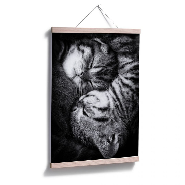 Das Poster zeigt zwei verschmuste Kätzchen in Schwarz-Weiss. Das Foto wurde von der Fotokünstlerin Andrea Jancova aufgenommen.