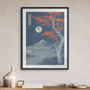 Dieses kunstvolle Poster bringt die Schönheit einer japanischen Mondnacht direkt an deine Wand. Die kühlen Blautöne von Himmel und Wasser strahlen eine beruhigende Ruhe aus, während der schneebedeckte Berg Fuji majestätisch im Hintergrund ruht. Die leuchtend roten Blätter eines Ahornbaums sorgen für einen faszinierenden Kontrast und verleihen dem Motiv eine besondere Tiefe.