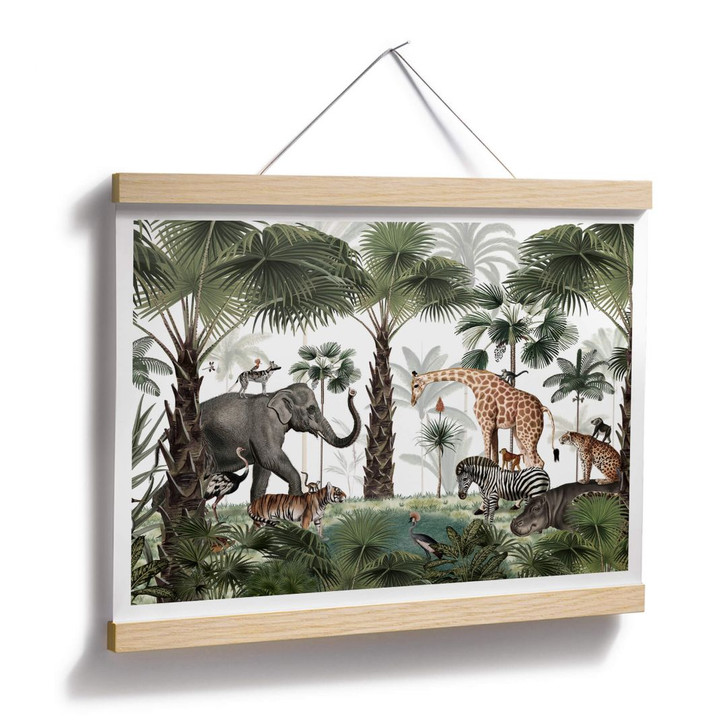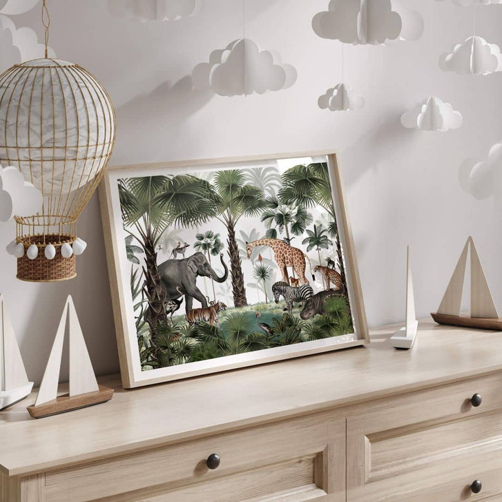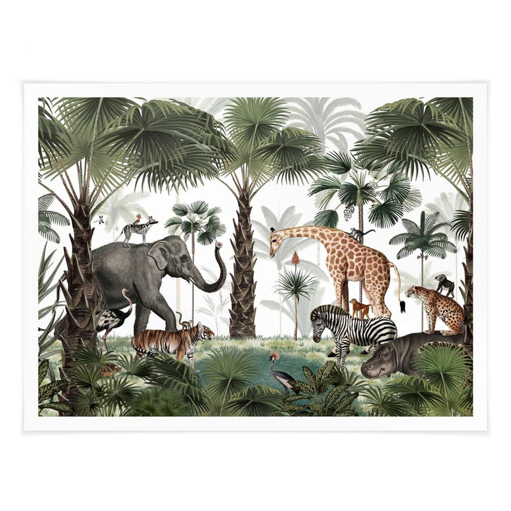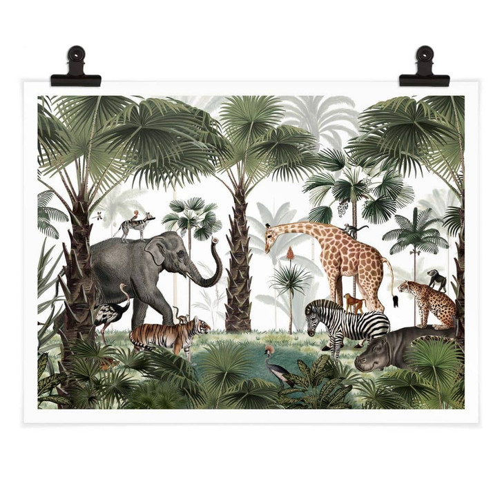 Für Kinder ist das eigene Zimmer ein Ort zum Spielen und Toben, aber auch ein Rückzugsort zum Ausruhen und Entspannen. Daher ist es besonders wichtig, diesen Raum individuell und abwechslungsreich zu gestalten. Das Kikki-Belle-Motiv eignet sich besonders für kleine Natur- und Tierliebhaber. Entdecke wilde tropische Landschaften! Diese Safari-Tour führt dich in ein Naturparadies, in dem Palmen, Tiere und Kulturen auf dich und die Kinder warten. Der vielfältige Tier- und Pflanzenlebensraum steckt voller Überraschungen, an jeder Ecke gibt es neue Lebewesen zu entdecken. Der ausdrucksstarke Kunstdruck zeigt die beliebtesten Tiere des Zoos: Elefanten, Giraffen, Tiger und Freunde haben sich in der grünen Oase versammelt. Die atemberaubenden Palmen unterstreichen den exotischen Look und lassen Wände höher erscheinen. Nicht nur für Kinder: Das beeindruckende Tiermotiv bringt auch frischen Wind in Wohn- und Schlafzimmer.