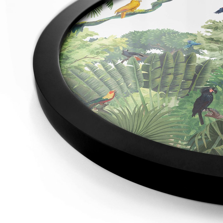 Tropisches Flair kommt aus dem fernen Regenwald direkt in dein Zuhause: Mit dem runden Bild kannst du im Badezimmer, Wohnzimmer, Schlafzimmer oder Kinderzimmer sofort natürliche und frische Akzente setzen. Auch die Flora und Fauna im artenreichen Dschungel wird dich und deine Kinder sofort begeistern. Die exotischen Palmen und Pflanzen präsentieren ihre prächtigen Blätter und die paradiesischen Vögel begeistern mit ihrem farbenfrohen Gefieder. Mit nur wenigen Handgriffen schaffst du mit dem grünen Motiv eine tropische Atmosphäre, die sich wie Urlaub anfühlt. Überzeug dich selbst!