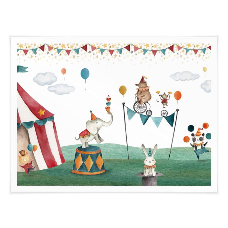 Ring frei – alle Kinder sind sofort in seinen Bann gezogen! Faszinierende Akrobatik, lustige Clowns und beeindruckende Zaubertricks: Der bunte Zirkus bringt Kinderaugen zum Leuchten und verbreitet gute Laune. Nervenkitzel ist angesagt: Die talentierten Tiere laden alle zu einer aufregenden Show ein und führen ihre besten Tricks vor. Das kindgerechte Motiv ist ein echter Hingucker! Wem der Zirkus zu Hause nicht genug ist, der bringt mit diesem Tiermotiv noch mehr Spass ins Haus.