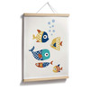 Spielen, lesen und schlafen – der Spielbereich ist der wichtigste Ort für jedes Kind. Hier können sich die Kleinen frei entfalten und wachsen. Und damit sie sich rund um die Uhr wohlfühlen, dürfen stilvolle Deko-Elemente nicht fehlen. Diese Illustration von Kubistika sorgt für einen tollen Hingucker im Kinderzimmer. Die kleinen bunten Fische schwimmen fröhlich im Wasser hin und her.