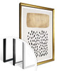 Schwarze Regentropfen fallen von einer goldenen Wolke auf den Boden. Das abstrakte Bild symbolisiert die Natur und setzt mit linearen Formen und dezenten Farben schlichte Akzente. Die goldene Wolke verleiht Ihren Räumen einen Hauch von Glamour!