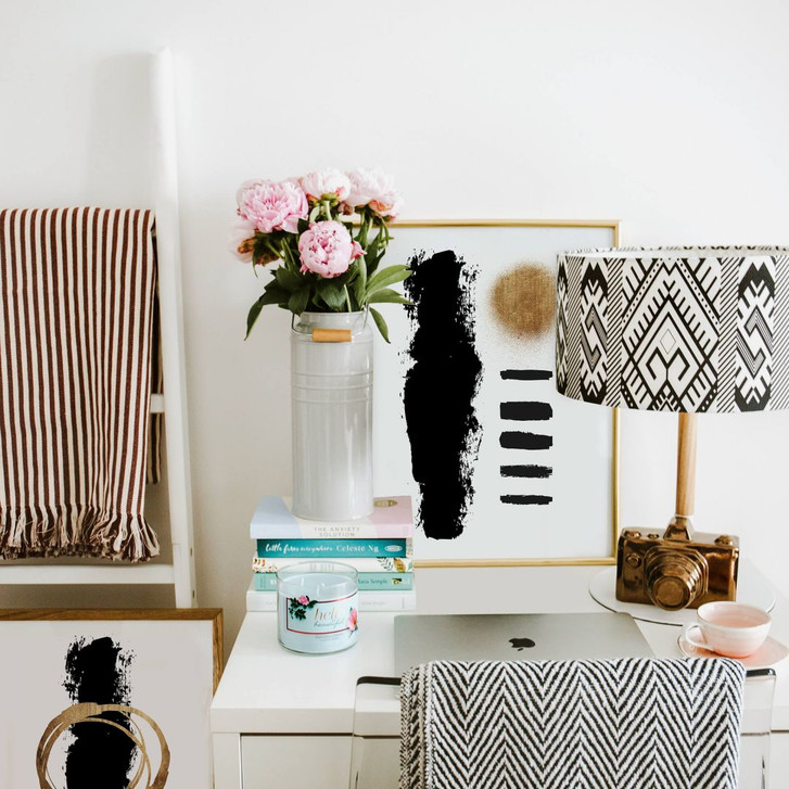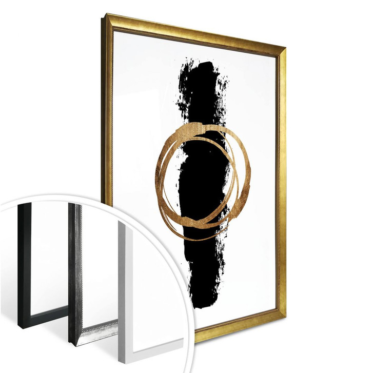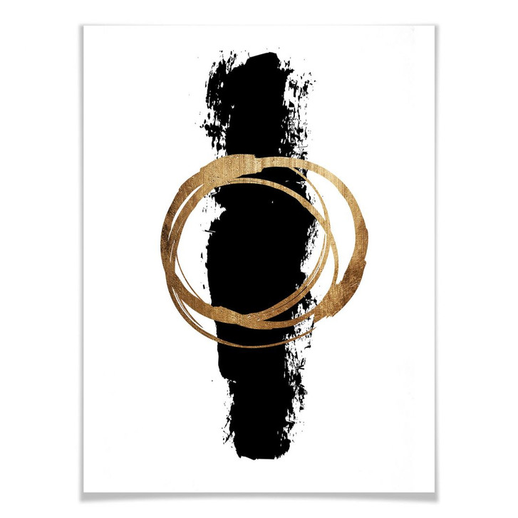 Das Gemälde mit der schwarzen Linie und dem goldenen Kreis zeigt den Kontrast zwischen Form und Farbe. Gestalte mit aussergewöhnlichen Motiven von Kubistika und lass dich von seiner modernen Kunst inspirieren!