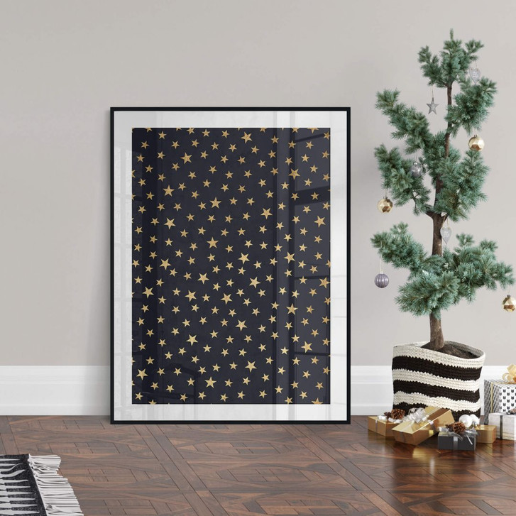 Das Sternenmotiv kommt als trendiges Poster für dein Zuhause. Ob du es in deinem Schlafzimmer, Wohnzimmer oder Kinderzimmer aufhängen möchtest, das stilvolle Schwarz-Gold-Design sorgt für einen harmonischen Look. Ausserdem kommen die vielen kleinen Sterne zur Weihnachtszeit besonders schön zur Geltung. Bringe mit diesem Wandbild noch mehr Besinnlichkeit in dein Zuhause!
