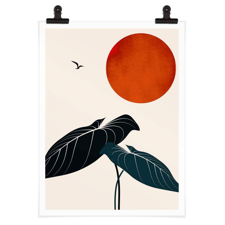 Ergänze dein Interieur mit dieser minimalistischen Landschaft. Ein puristisches Design, das sich in fast jeden Raum integrieren lässt. Von der Natur inspiriert, kommt dieses idyllische Motiv in einem dezent natürlichen Stil zu dir nach Hause. Während ein Vogel seinen Weg sucht, kannst du die tropischen Pflanzen in der prallen Sonne bewundern.