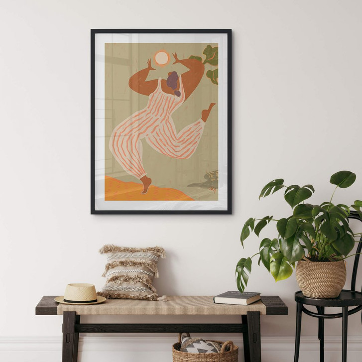 Schmücke deine Wände mit originellen Bildern und schaffe dir ein entspanntes Wohnambiente! Dieses Kunstwerk zeigt eine Frau, die sich ausgelassen im Sonnenlicht bewegt. Es vermittelt ein Gefühl von Freude und Freiheit. Das Hochformat verleiht deinem Zuhause einen modernen Flair, der sich im ganzen Raum fortsetzt. Das Wandmotiv besticht durch seinen hochwertigen Druck in beigen Farbtönen. Den passenden Bilderrahmen und weiteres Zubehör kannst du gleich mitbestellen.