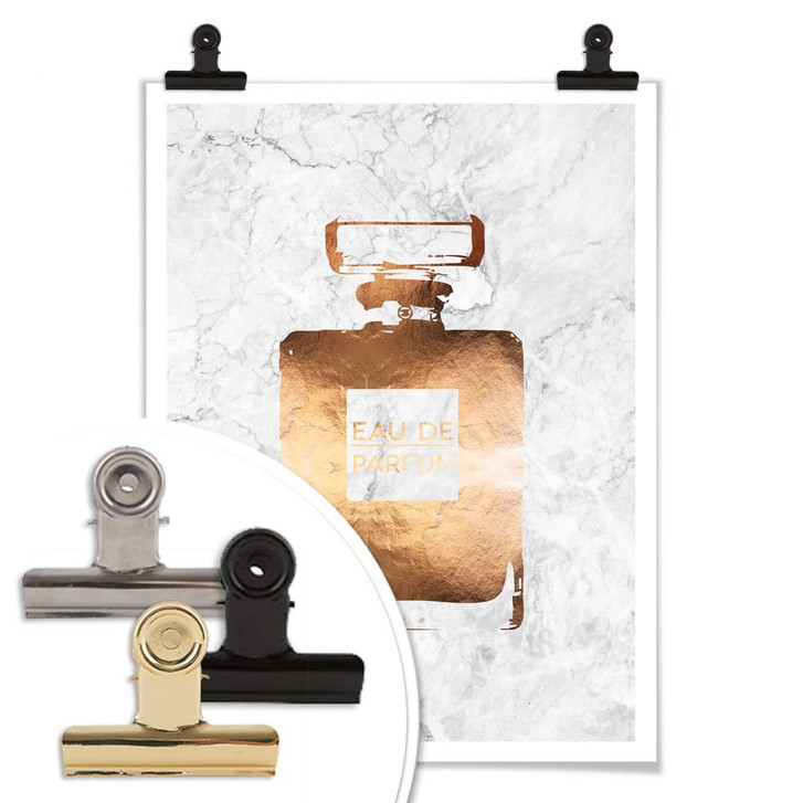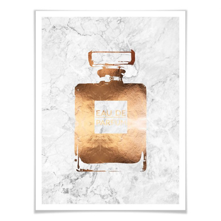 Schmücke deine Wand mit dem trendigen Poster im Kupfer-Look! Der Parfumflakon auf dem Marmorhintergrund ist ein Hingucker an der Wand. Das Poster mit dem aufgedruckten Kupfereffekt ist in verschiedenen Grössen erhältlich. Die kreative Wandhalterung kannst du gleich mitbestellen.
