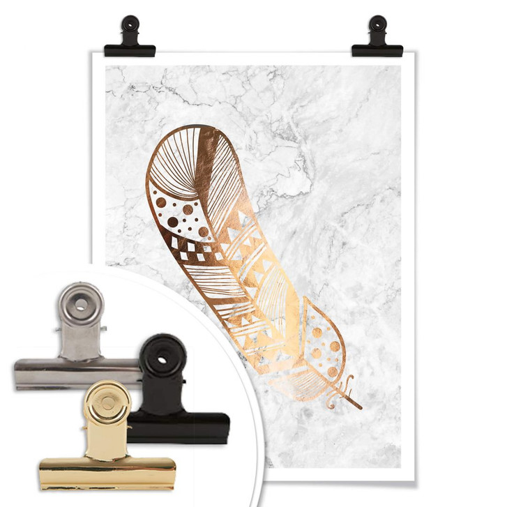 Dekoriere deine Wand mit dem trendigen Poster im Kupfer-Look! Die zarte Feder auf dem Marmorhintergrund ist ein Hingucker an der Wand. Das Poster mit dem aufgedruckten Kupfereffekt ist in verschiedenen Grössen erhältlich. Die kreative Wandbefestigung kannst du gleich mitbestellen.