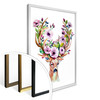 Hier hat sie ein Reh mit rosa Blumen auf dem Geweih geschaffen, die es noch majestätischer erscheinen lassen. Zeichnungen und Illustrationen im Boho-Stil sind sehr beliebt und liegen voll im Trend. Mit den besonderen Motiven von Kvilis kannst du deine Wände farbenfroh und kreativ gestalten!