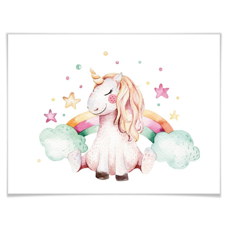 Licht aus, Träume an bitte! Es ist Schlafenszeit. Zeit, all deinen Liebsten eine gute Nacht und süsse Träume zu wünschen. Dieses süsse Einhorn döst bereits. Hinter den Wolken und dort, wo die Sterne leuchten, fühlt es sich am wohlsten. Wie wäre es mit dem niedlichen Einhornmotiv für das Zimmer deines Kindes? Wir haben eine grosse Auswahl an anderen ähnlichen Bildern im trendigen Einhornstil!