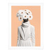 Treechild-Kunstdruck: Dame in Weiss mit Blumen auf pfirsichfarbenem Hintergrund