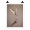 Verschönere dein Zuhause – wir haben Wandkunst für jeden Geschmack. Dieses Motiv der Fotografin Vicki Lai zeigt einen Kranich, der auf dem Wasser landet. Der Vogel hat seine grossen Flügel elegant ausgebreitet und seine Füsse nach vorne gestreckt. Sein Körper spiegelt sich im Wasser.