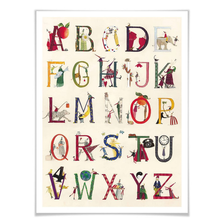 Das Alphabet, frech illustriert von der Künstlerin Silke Leffler. Die fantasievollen Illustrationen machen das Lernen des Alphabets zu einem grossen Spass. Silke Leffler hat ihr wunderbar feines Gespür für die kindliche Seele nie verloren und lädt uns mit ihren schönen Motiven zum Träumen ein. Ein wunderbares Geschenk nicht nur zum Schulanfang. Der hochwertige Kunstdruck als Poster ist in verschiedenen Grössen erhältlich.