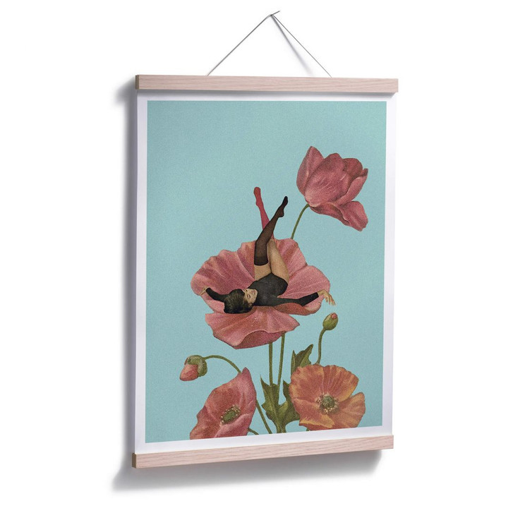 Dieses Motiv zeigt eine Frau im Miniformat, die auf einer Mohnblume liegt. Dekoriere mit einem floralen Look und gönne dir eine Auszeit mit den frühlingshaften Mohnblumen an deinem Wohlfühlort!