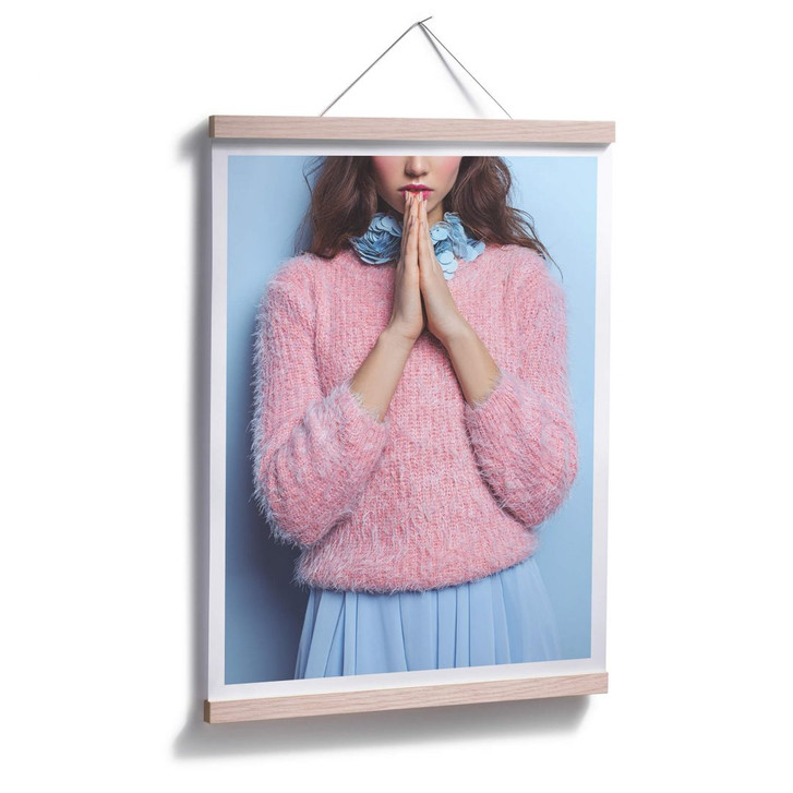 - Montagevorschläge: Tesa Tacks, Washi Tape, Posterleiste aus Eichenholz, hochwertige Posterklemmen aus Metall oder Bilderrahmen