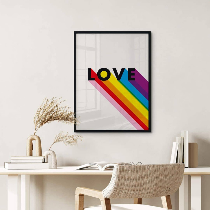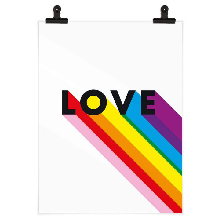 Verpasse deinen Wänden einen modernen Look – mit dieser Wanddekoration liegst du genau richtig. Die Regenbogenfahne ist das Symbol von Schwulen, Lesben, Bisexuellen und queeren Menschen. Die leuchtenden Farben verbinden Menschen mit unterschiedlichen Geschlechtsidentitäten auf der ganzen Welt und vermitteln ein Gefühl von gemeinsamen Werten und gegenseitiger Loyalität. Der Regenbogen ist nicht nur farbenfroh und vielfältig, sondern stellt auch eine Art Brücke dar, die Menschen verbindet. Das internationale Symbol steht für Erwachen, Identität und Inspiration. Zusammen mit dem Wort „Love“ ist das Poster ein Hingucker, der positive Vibes versprüht. Dieses farbenfrohe Poster ist ein überzeugendes Highlight für deine vier Wände. Es lässt sich schnell anbringen und schafft mit wenig Aufwand ein modernes Raumgefühl, das zum Wohlfühlen einlädt.