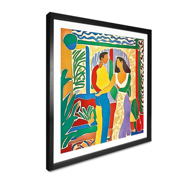 Zuhause ist ein Ort, an dem sich Familie und Gäste wohlfühlen sollen. Dieses Poster verleiht der Umgebung eine angenehme Atmosphäre. Der Kunstdruck von Zamart zeigt ein Paar in einem Raum. Das Paar strahlt Zusammengehörigkeit, Intimität und starke Bindungen aus. Das farbenfrohe Motiv wurde im Stil des bedeutenden Künstlers der klassischen Moderne Henri Matisse gemalt. Hier wurden Formen, Linien und ausdrucksstarke Farben eingesetzt, um eine starke Wirkung zu erzielen. Das abstrakte Bild kann das Raumgefühl positiv beeinflussen.