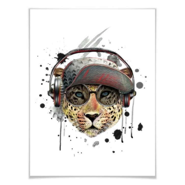 Das Poster mit dem Musik hörenden Leoparden ist ein Hingucker an der Wand. Das Wandbild ist in verschiedenen Grössen erhältlich.
