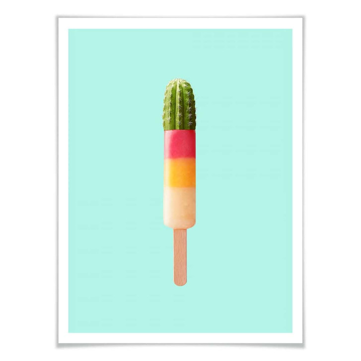Einfach mal entspannen – das geht am besten in den eigenen vier Wänden. Hol dir dieses Wandbild nach Hause und schaffe dir eine fröhliche Umgebung. Die Fotokunst des Künstlers Jonas Loose zeigt das berühmte Kaktus-Eis für Kinder. Statt des grünen Toppings mit knisterndem Brausepulver liegt auf den drei fruchtigen Eissorten ein echter Kaktus.