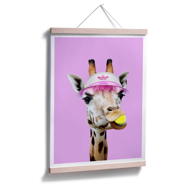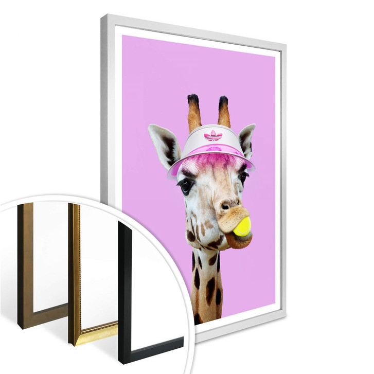 Die sportliche Giraffe mit Tenniskappe und Tennisball im Maul vor einem rosa Hintergrund versetzt einen in Sommerstimmung! Sowohl tierischer als auch sportlicher Spass sind bei Looses Fotomotiv garantiert. Dekoriere mit dem lustigen Tiermotiv und verbreite gute Laune!