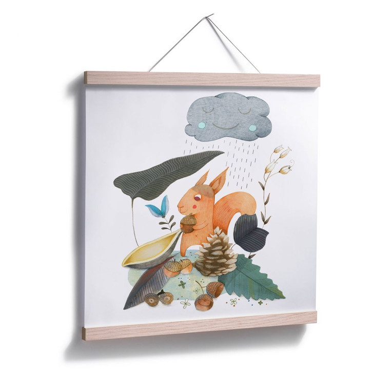 Nicht nur zum Schlafen da: Baby- und Kinderzimmer haben viele Funktionen, schliesslich wird darin gespielt, gelernt und gross geworden. Deshalb ist unsere Dekoration genau auf diese Bedürfnisse abgestimmt. Diese Illustration schafft hier einen stilvollen Blickfang. Dieses freundliche Eichhörnchen möchte Hallo sagen. Das liebevoll illustrierte Tier mit verschiedenen Naturelementen aus dem Wald macht das Kinderzimmer hell und freundlich und lädt die Kleinen zum Spielen ein. Mit diesem quadratischen Poster in Weiss und Farbe holst du dir ein echtes Highlight nach Hause. Es lässt sich leicht aufhängen und schafft mit wenig Aufwand ein neues Raumgefühl, das zum Wohlfühlen einlädt. Unsere Poster aus hochwertigem Poster-Spezialpapier werden mit umweltfreundlicher Latextinte bedruckt. Die mehrlagige Beschichtung verleiht dem Papier eine hohe Stabilität und Kratzfestigkeit.