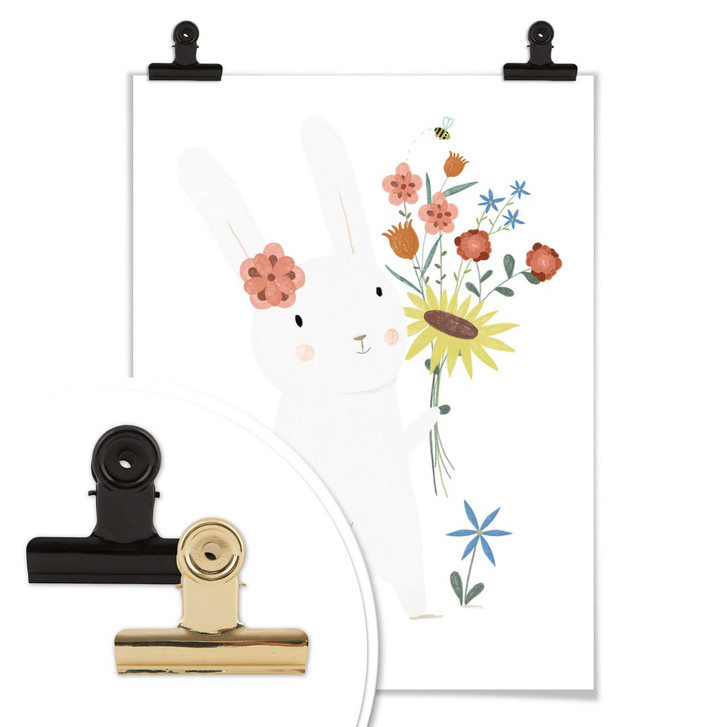 Judith Loske arbeitet als freiberufliche Illustratorin, unter anderem für Bücher. Dieses niedliche Motiv mit dem kleinen weissen Hasen, der einen grossen Blumenstrauss hält, ist ein absoluter Hingucker an der Kinderzimmerwand! Das Poster ist in verschiedenen Grössen erhältlich. Die kreative Wandaufhängung kannst du gleich mitbestellen.