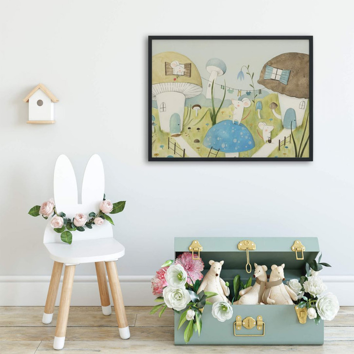 Schaffe einen fantasievollen Ort zum Lernen, Spielen und Träumen für Kinder. Die Illustration von Judith Loske ist ein toller Blickfang im Kinderzimmer. Das Poster zeigt einen Einblick in das Leben von Mäusen.