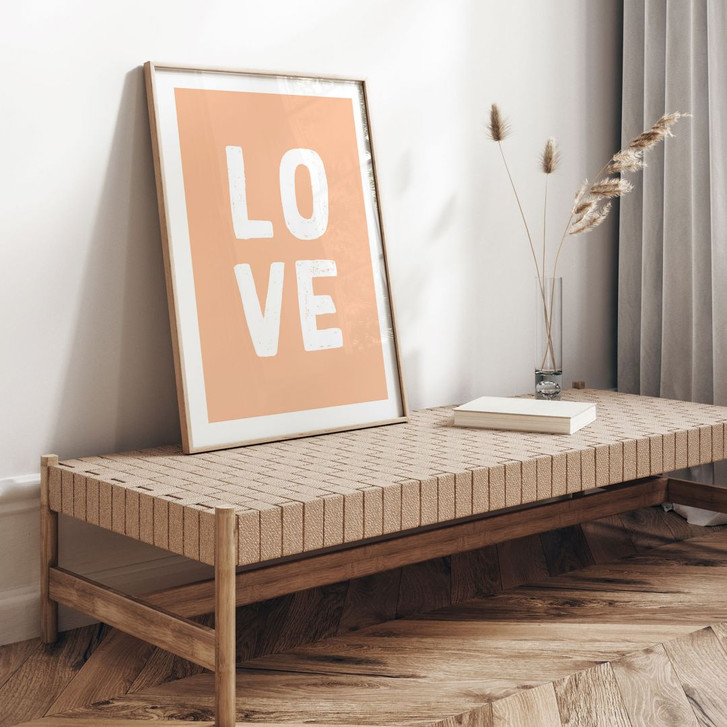Pfirsichfarbenes Poster mit dem Wort „LOVE“
